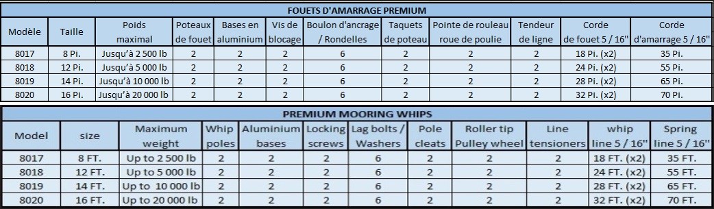 • 16' whip Item # 3800F - Boat of maximum 20,000 lb