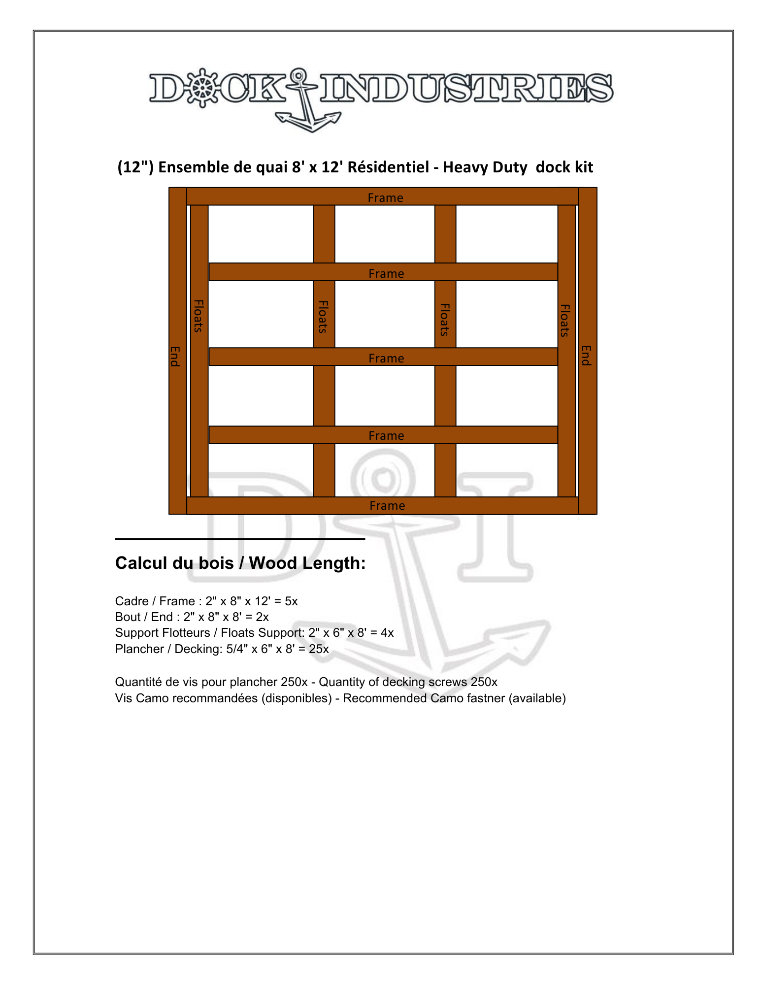 Ensemble de quai Résidentiel 8'x12' - Sans ancrage