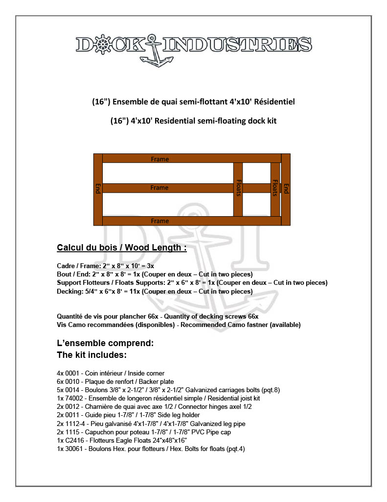 XCet ensemble vous permet également de construire un quai semi-flottant 4'x8' ainsi qu'un 4'x6'.