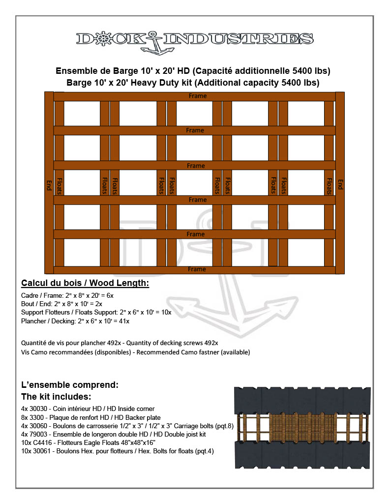 Notre ensemble de ''Style Barge'' vous offre une capacité de charge supérieure pour transporter des matériaux et outillage sur l'eau.