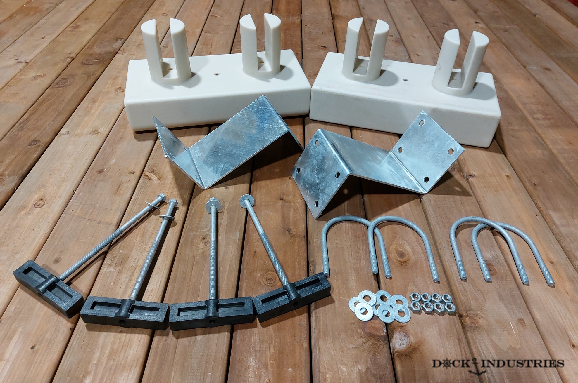 • 4x Boulons d'acier galvanisés avec blocs de polyéthylène.