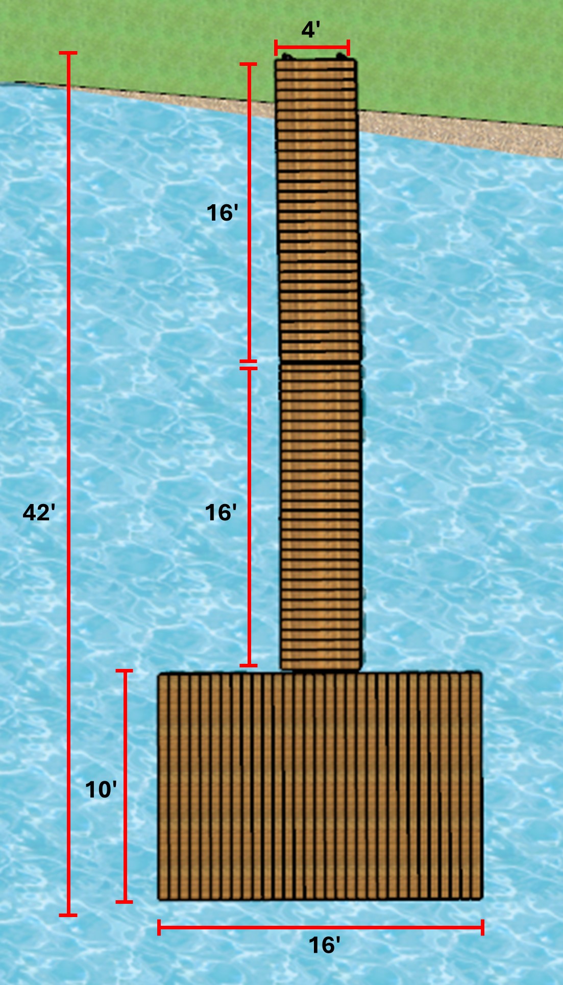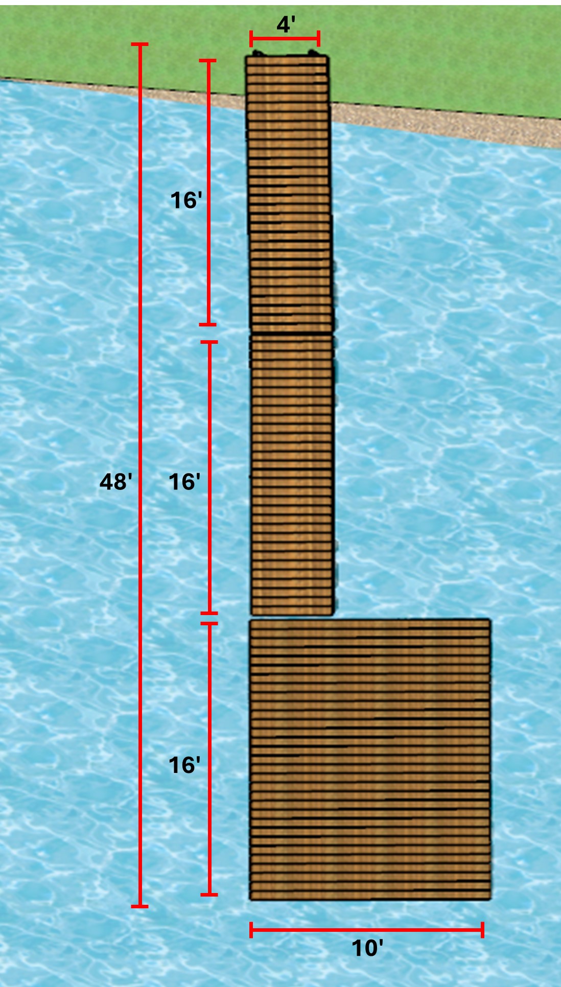 Profitez de notre ensemble complet de quais avec configuration en "L" comprenant un quai semi-flottant 4'x16', un quai flottant 4'x16' et un quai flottant 10'x16' de la série Heavy Duty avec des flotteurs de 16".