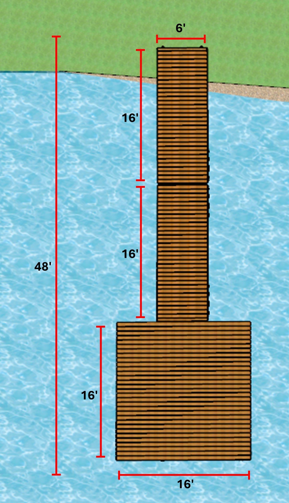 Profitez de notre ensemble complet de quais avec configuration en "L" comprenant un quai semi-flottant 6'x16', un quai flottant 6'x16' et un quai flottant 16'x16' de la série Heavy Duty avec des flotteurs de 16".