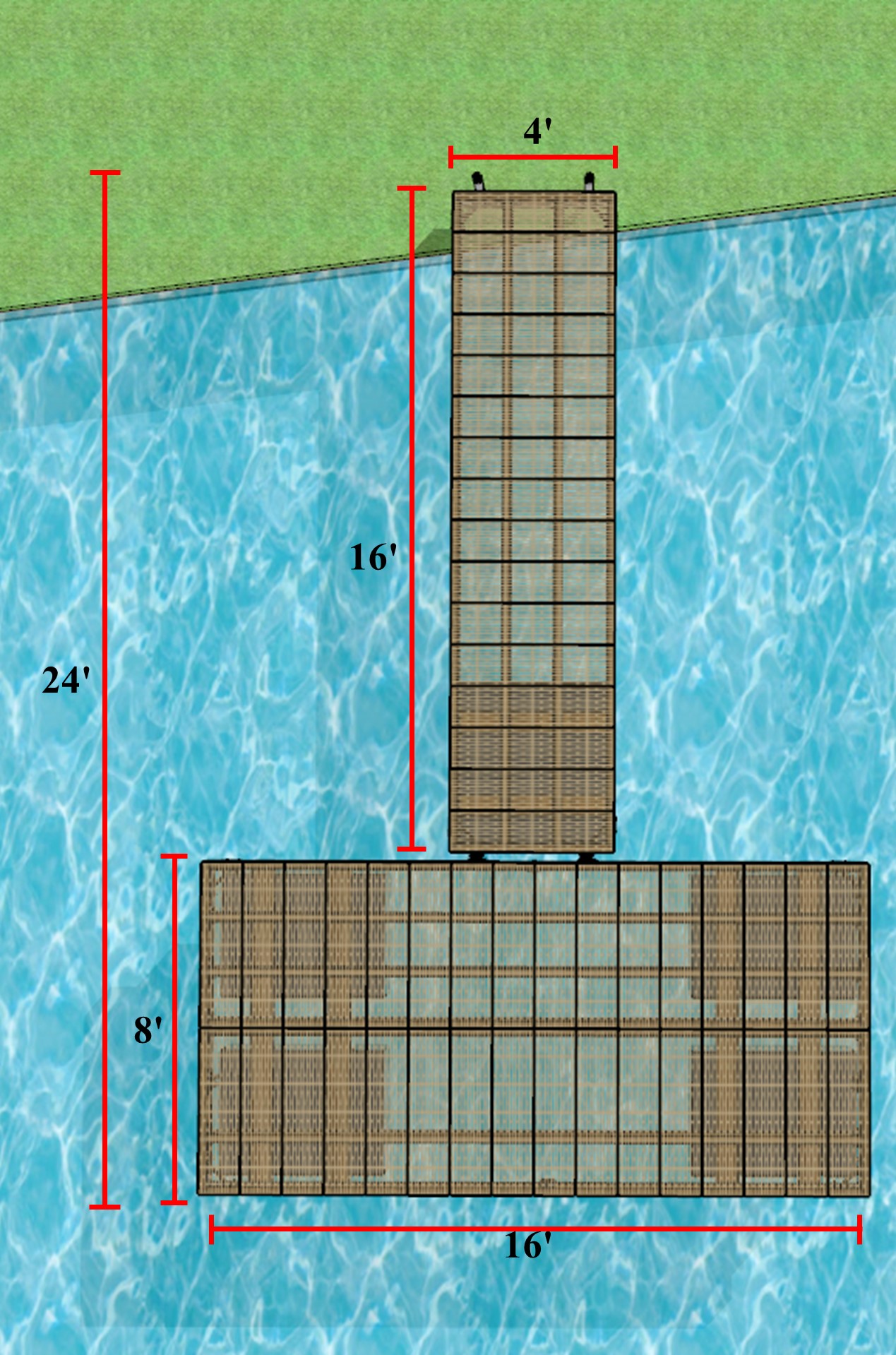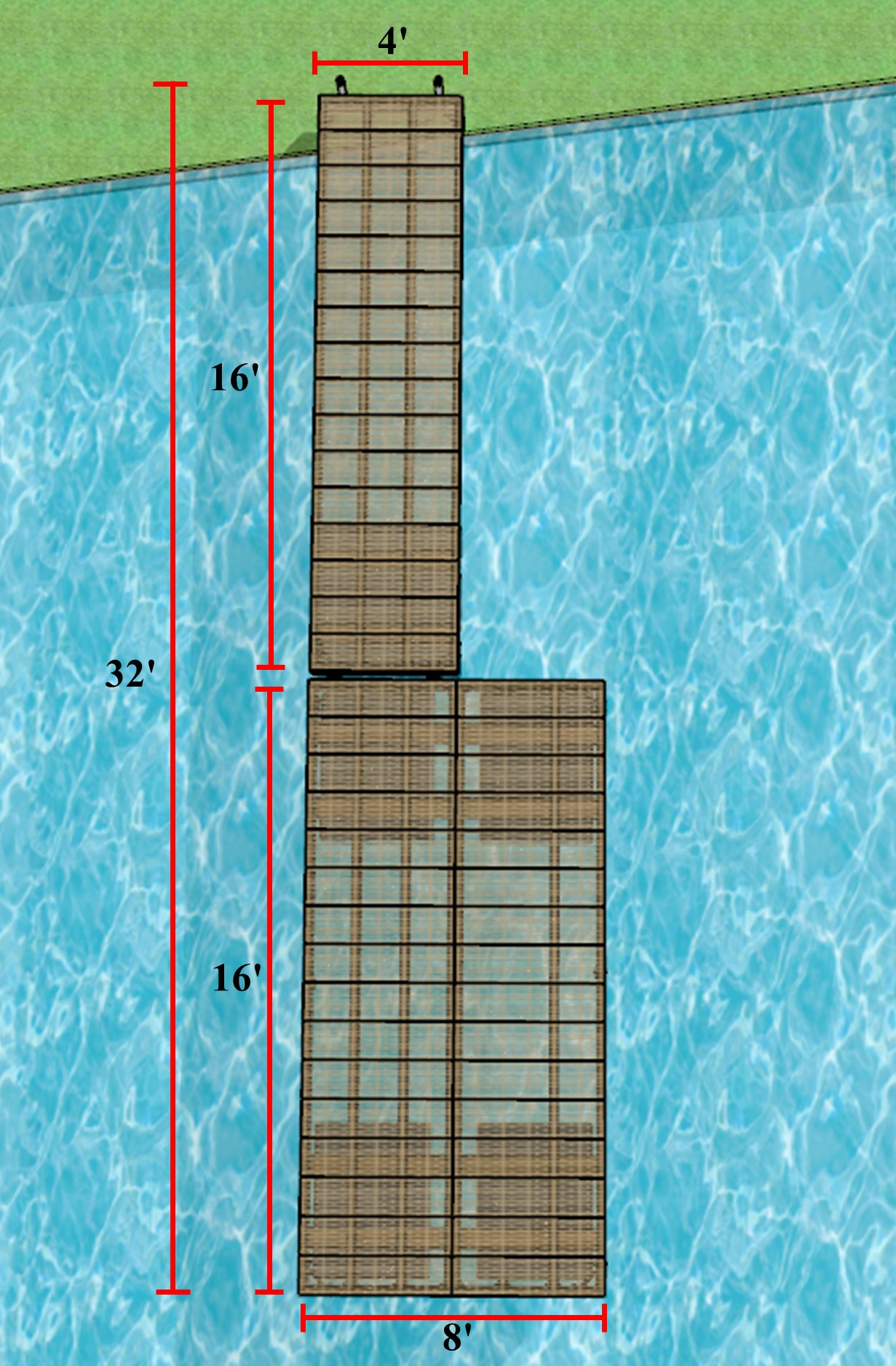 Profitez de notre ensemble complet de quais comprenant un quai semi-flottant 4'x16' et un quai flottant 8'x16'.