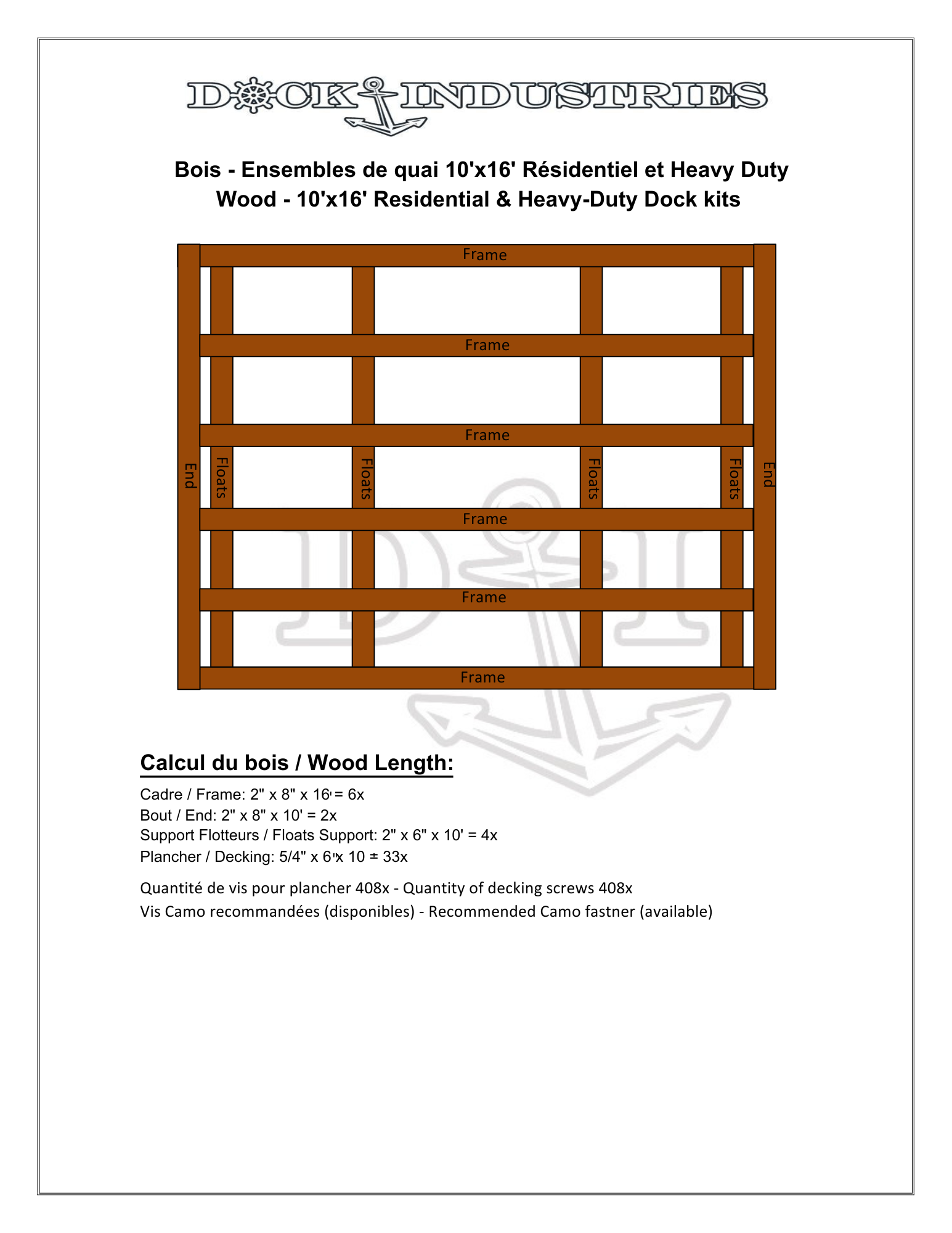Ensemble de quai Résidential 10'x16' - Sans ancrage