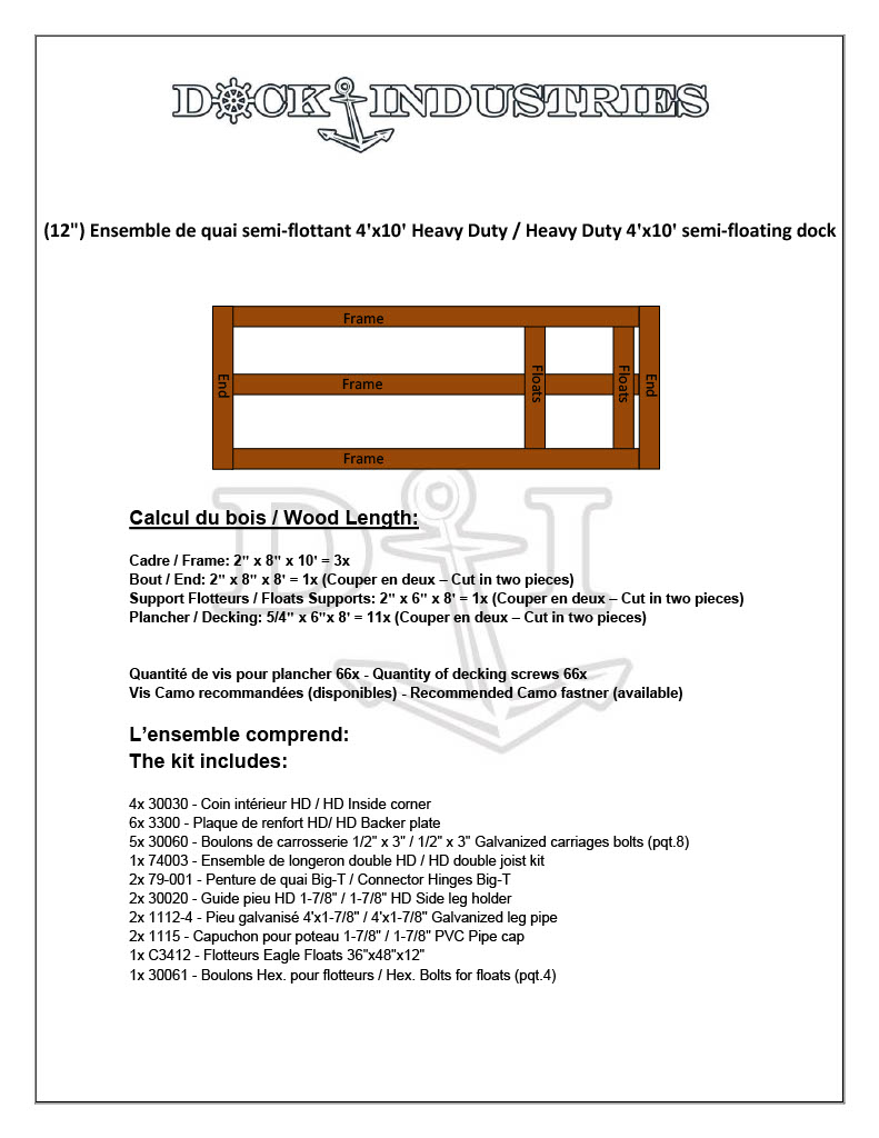 Cet ensemble vous permet également de construire un quai semi-flottant 4'x12'.