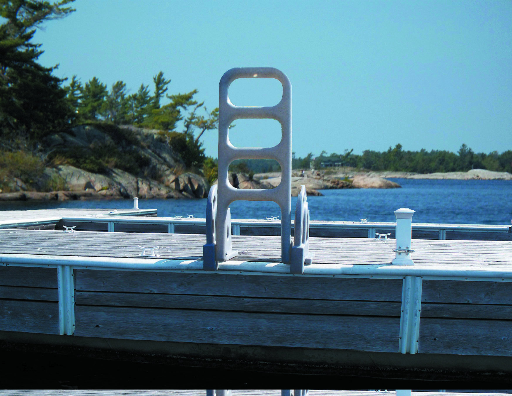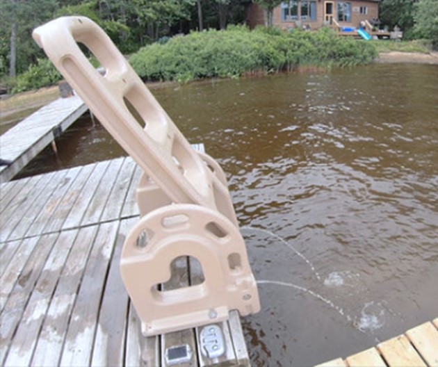The Stand Off roto molded ladder extends into the water at a 60 degree angle to make getting out of the water easier.