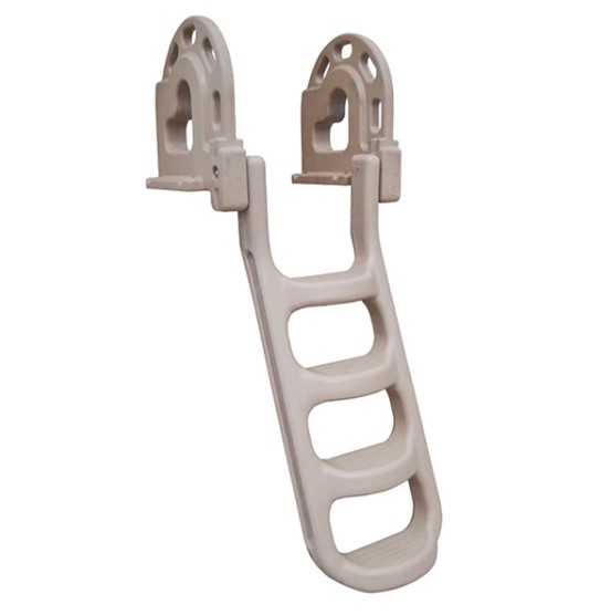 Tough and Durable, this roto-molded ladder swings up and out the way, locking in place when not in use.