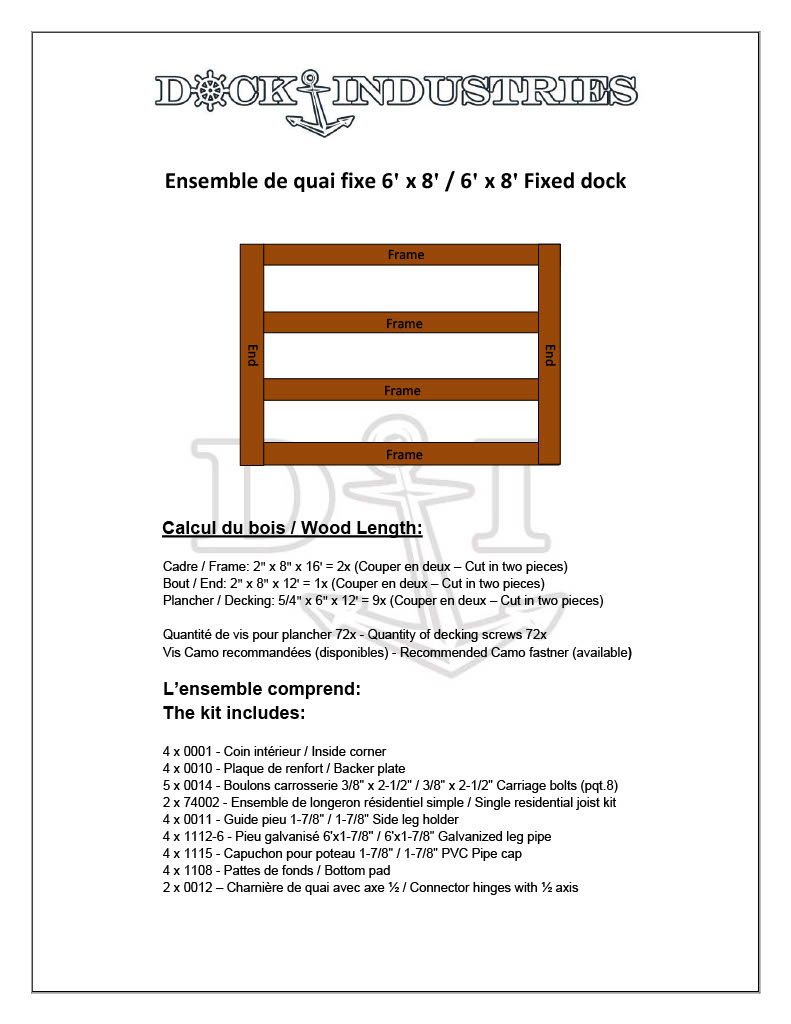Dock kit designed to connect a semi-floating dock or used as a platform.